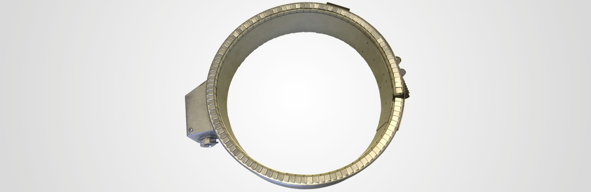 Ribbon and flat radiators are used for the heating of machines used in the plastics processing industry, as well as in tool and mould construction. Vulkan AG produces cylindrical, flat, frame, shaped and circular radiators. In accordance with the requirements in terms of the temperature and surface load (W/cm2), the heating elements are produced with micanite or ceramic as the base material. Micanite radiators are available according to customer requirements in a flat and cylindrical design with a heating section and tension belt, as well as insulation, hinges, etc. These can also be manufactured without a sheet metal jacket. For the installation of the temperature sensor, the radiators can be provided with drill holes and recesses, as well as brackets or sockets.